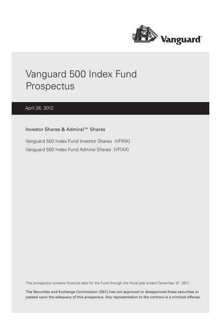Vanguard 500 Index Fund Prospectus Investor Shares Amp Admiral